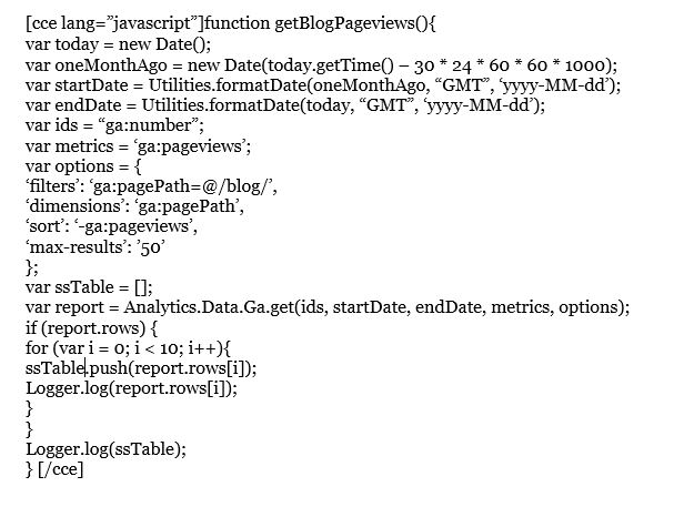 - Vamos começar utilizando a API do Google Analytics. Você pode acessá-la aqui: https://developers.google.com/apps-script/advanced/analytics .