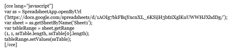 Neste código, acessamos a planilha com o Spreadsheet App.